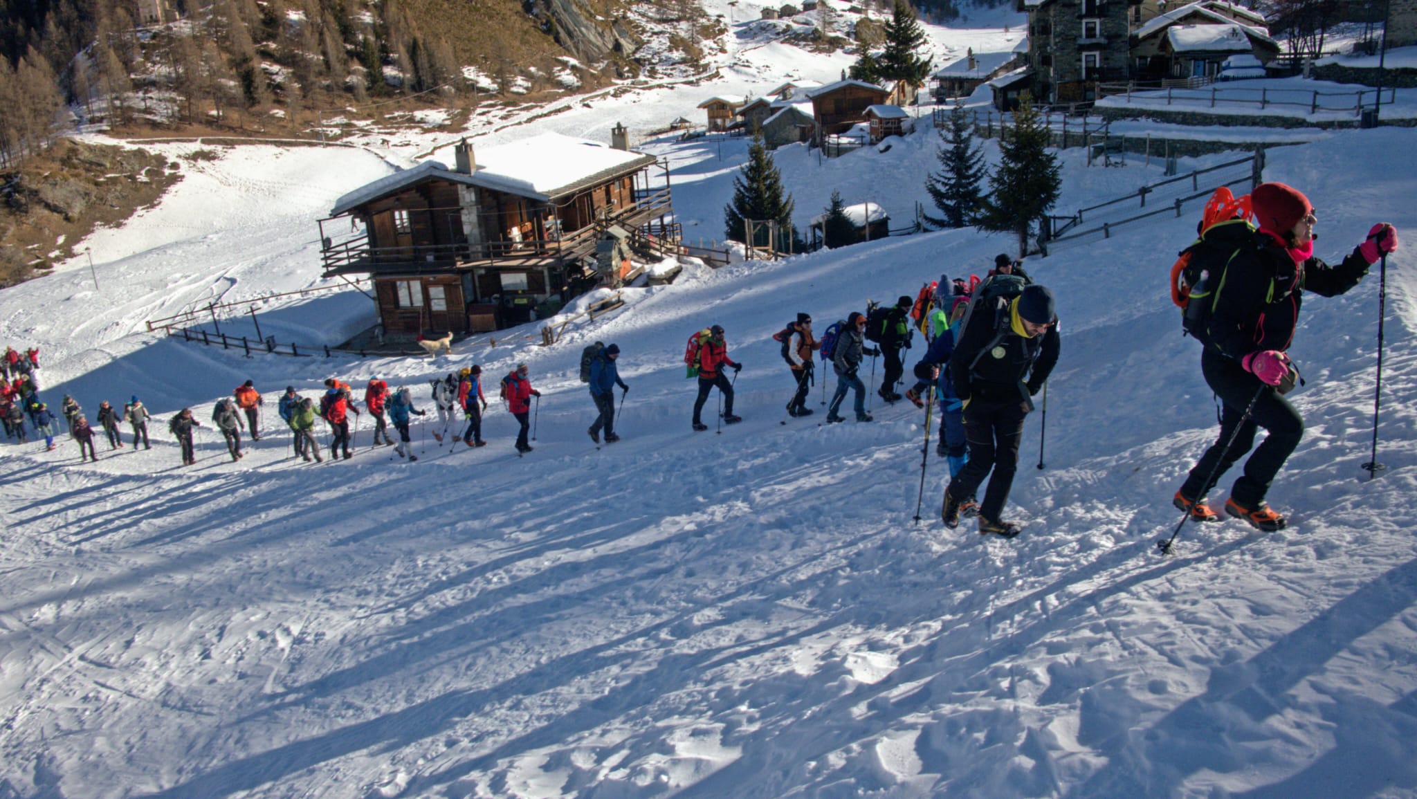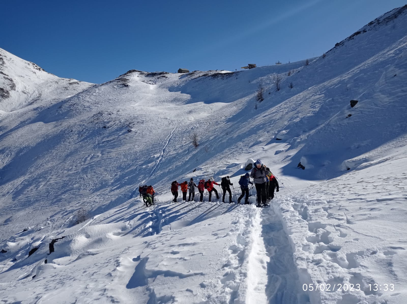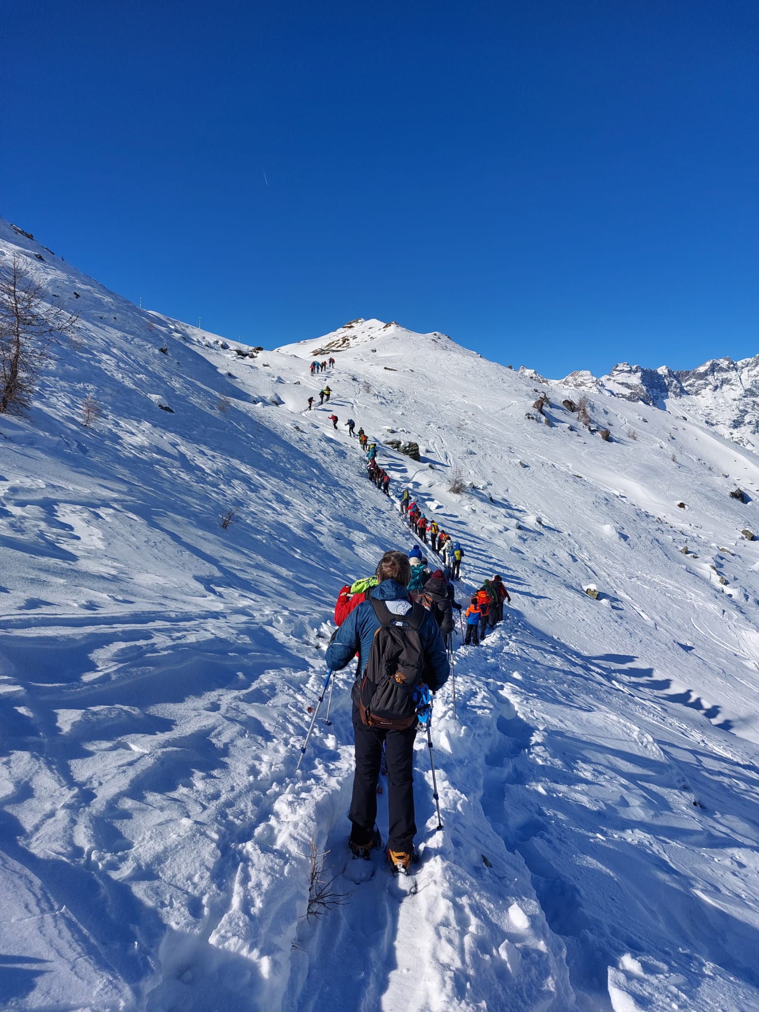Una radiosa giornata di sole ed il clima favorevole, hanno dato agio alla seconda uscita invernale del gruppo escursionistico. Cinquanta ciaspolatori e sei scialpinisti, hanno riempito coi loro vestimenti colorati il candido manto nevoso della valle che volge lo sguardo al Cervino.